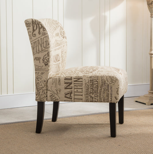 Roundhill Furniture Capa Fabric Armless Contemporary Accent Chair, Chalkboard Light Print