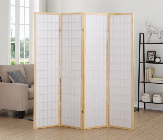 Roundhill Furniture 4 Panel Oriental Shoji Screen / Room Divider, Natural