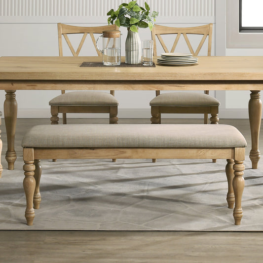 Roundhill Furniture Verta Solid Wood Upholstered Dining Bench, Light Oak Finish