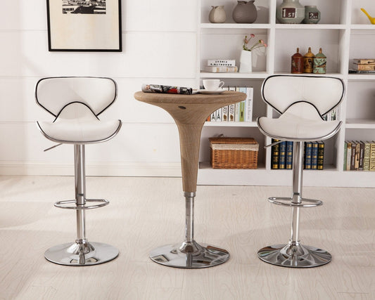 Roundhill Furniture Masaccio Faux Leather Airlift Adjustable Swivel Barstools, White, Set of 2