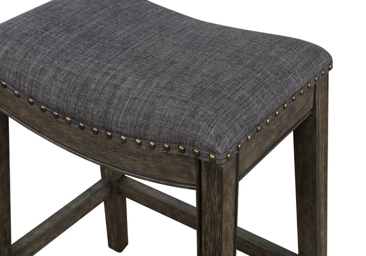 Maroni Faric Upholstery Nailheaded Saddle Barstool in Gray, Set of 2