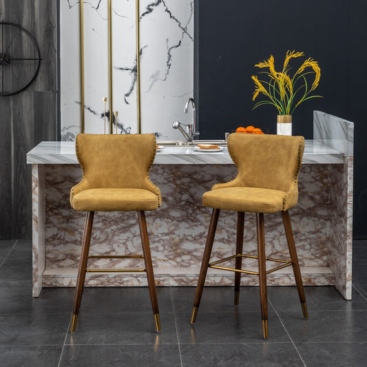 Roundhill Furniture Nevis Mid-century Modern Faux Leather Tufted Nailhead Trim Barstool, Yellow, Set of 2
