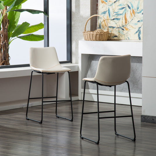 Lotusville Vintage PU Leather Bar Stools, White, Set of 2