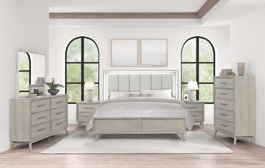 Roundhill Furniture Seluna Contemporary Bedroom Collection with Touch LED Lighting, Gray Oak Finish