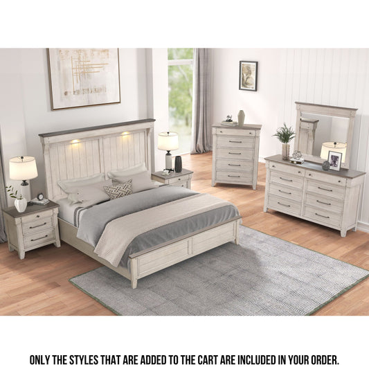 Walcott Bedroom Collection with Touch LED Lighting, Weathered Dusty-taupe Finish