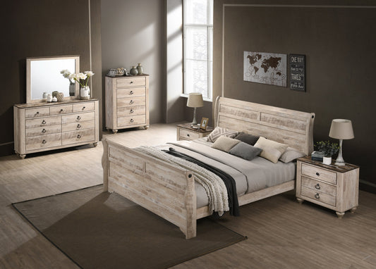Imerland Contemporary White Wash Finish Bedroom Collection - Sleigh Bed