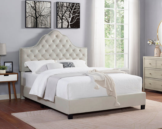 Floris Portman Style Diamond Tufted Upholstered Bed with Nailhead in Tan