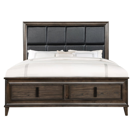 Aetheria Contemporary Wood Upholstered Storage Panel Bed, Dark Brown