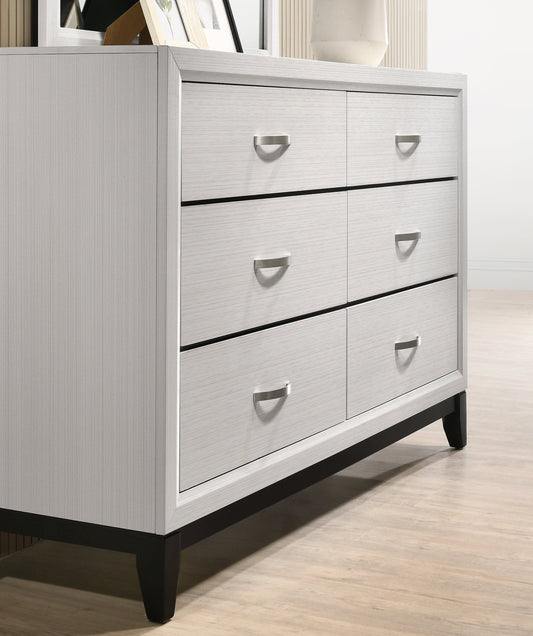 Stout Contemporary 6-Drawer Metal Bar Pulls Wood Dresser, White