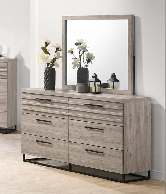 Alvear Contemporary 6-Drawer Dresser with Mirror, Weathered Gray