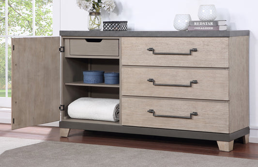 Arbela Wood 3-Drawer Combo Dresser, Weathered Oak Finish