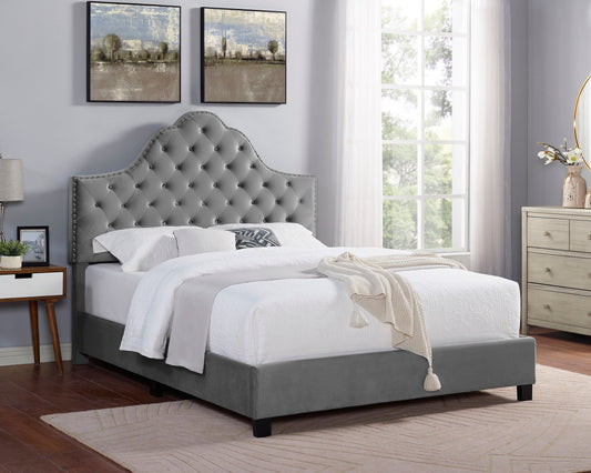 Roundhill Furniture Apoera Velvet Upholstered Button Tufted Bed, Gray