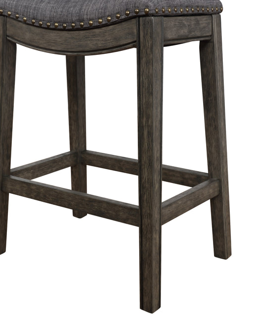 Maroni Finish Faric Upholstery Nailheaded Saddle Counter Stool in Gray, Set of 2