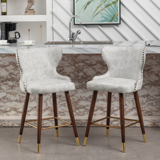 Roundhill Furniture Nevis Mid-century Modern Faux Leather Tufted Nailhead Trim Counter Stool, Set of 2