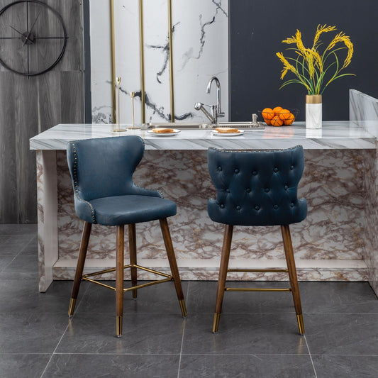 Roundhill Furniture Siena Counter Height Button Tufted Back Solid Wood Stools, Blue, Set of 2