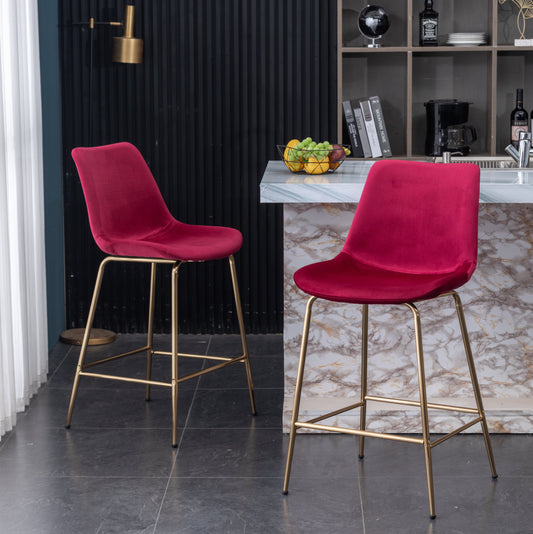 Roundhill Furniture Aufurr Modern Velvet 26.50 Counter Height Stool, Set of 2, Red
