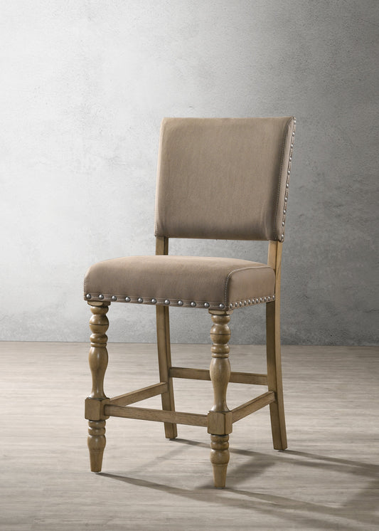 Birmingham Script Printed Driftwood Finish Counter Height Dining Chair with Nail head, Set of 2