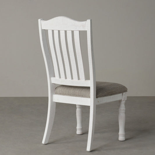 Roundhill Furniture Belleza Antique White Solid Wood Upholstered Dining Chairs, Set of 2
