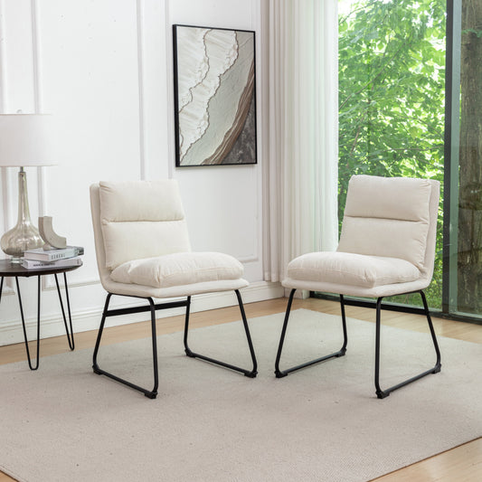 Noyes Faux Leather Seat Metal Frame White Dining Chairs , Set of 4