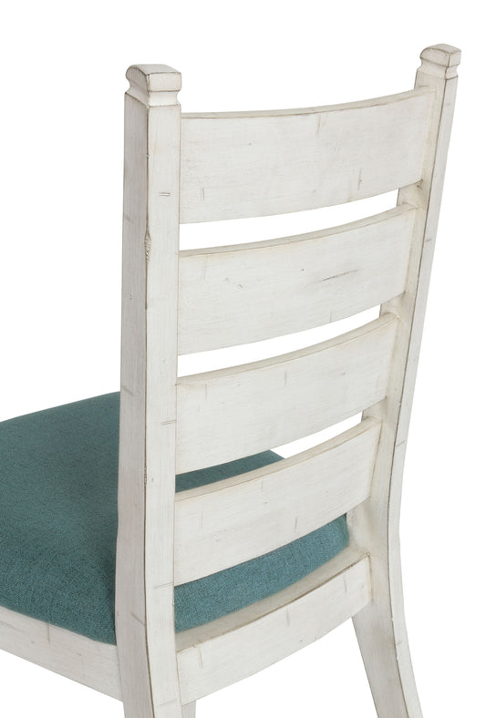Florina Antique White Wood Ladderback Upholstered Dining Chairs, Set of 2