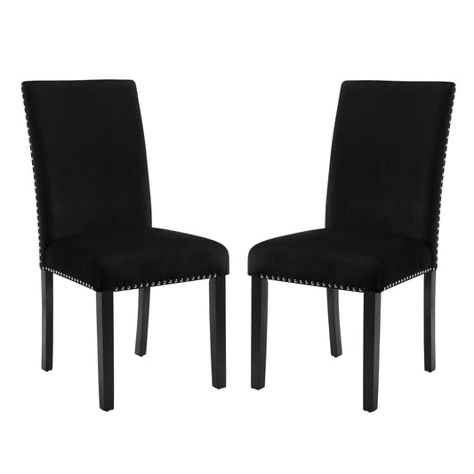 Cobre Contemporary Velvet Dining Chair with Nailhead Trim, Set of 2, Black