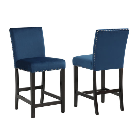 Cobre Contemporary Velvet Counter Stool with Nailhead Trim, Set of 2, Blue