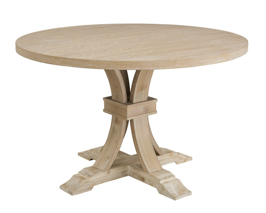 Siena White-washed Finished 5-Piece Dining set, Pedestal Round Table with Tan Upholstered Chairs