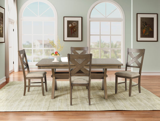 Enna Morden Farmhouse Wood 5-Piece Trestle Dining Set, Brushed Driftwood Finish