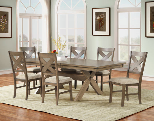 Enna Morden Farmhouse Wood 7-Piece Trestle Dining Set, Brushed Driftwood Finish