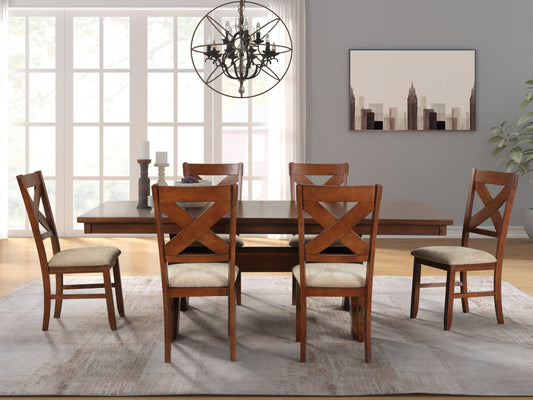 Karven Wood 7-Piece Dining Set, Extendable Trestle Dining Table with 6 Chairs, Dark Hazelnut