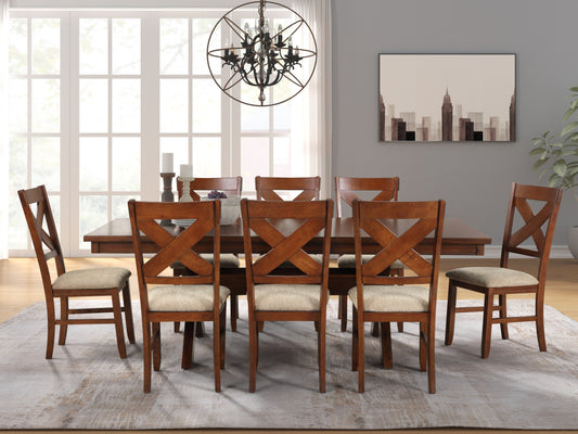 Karven Wood 9-Piece Dining Set, Extendable Trestle Dining Table with 8 Chairs, Dark Hazelnut