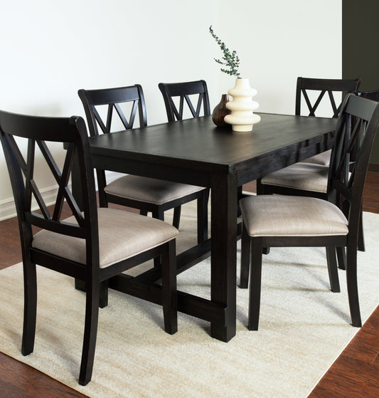 Hensfield Contemporary 7-Piece Dining Set, Dining Table with 6 Cross-back Chairs, Rich Black