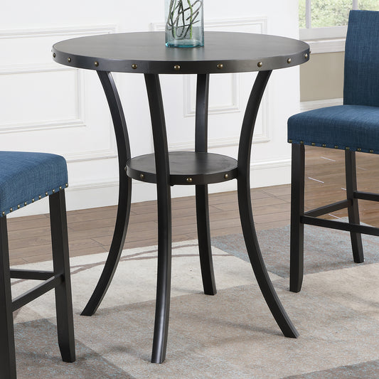 Roundhill Furniture Biony 3-Piece 36 Round Espresso Finish Bar Table with 2 Blue Fabric Nail Head Pub Chairs