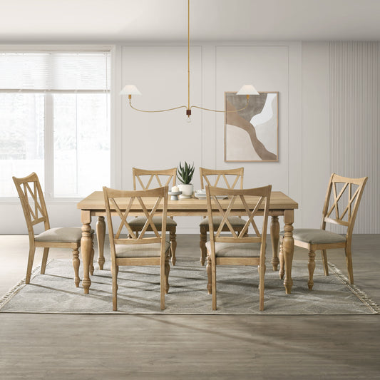 Roundhill Furniture Verta 7-Piece Dining Table with 6 Cross Back Dining Chairs, Light Oak Finish