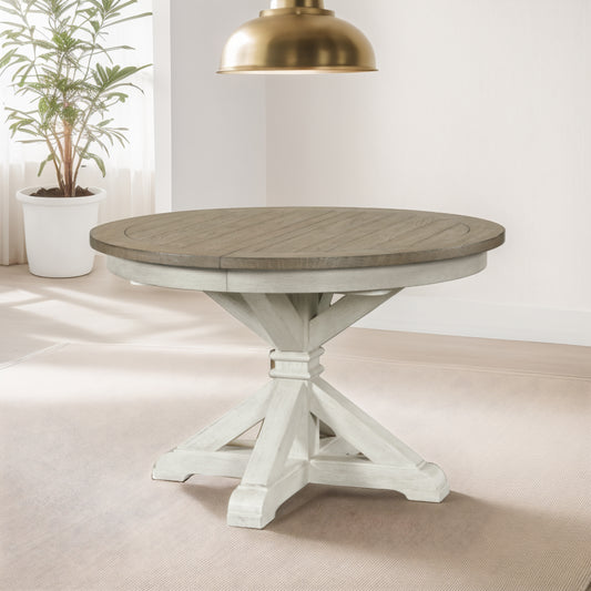 Roundhill Furniture Harola 7-Piece Dining Set, Round Pedestal Dining Table with 18" Leaf, 6 Side Chairs