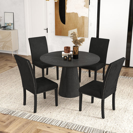 Aurora 5-Piece Round Dining Set, Pedestal Dining Table with 4 Velvet Chairs