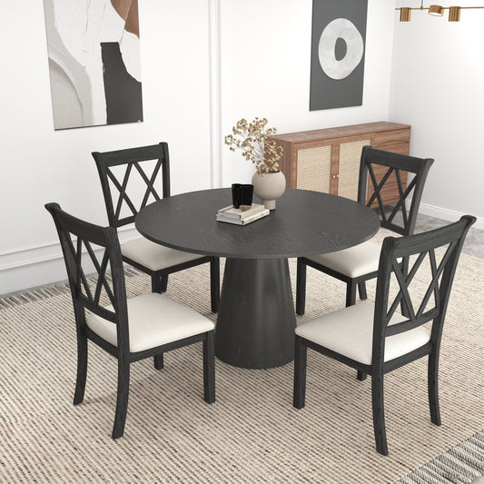 Delta 5-Piece Round Dining Set, Pedestal Dining Table with 4 Cross-back Chairs