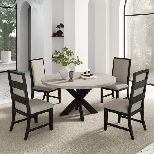 Gates 5-Piece Round Dining Set, Criss-Cross Dining Table with 4 Stylish Chairs, Light Gray