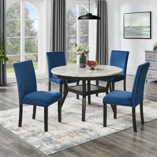 Roundhill Furniture 5-Piece Mella Dining Set - Round Faux Marble Table with 4 Velvet Parsons Chairs, Dark Espresso Finish