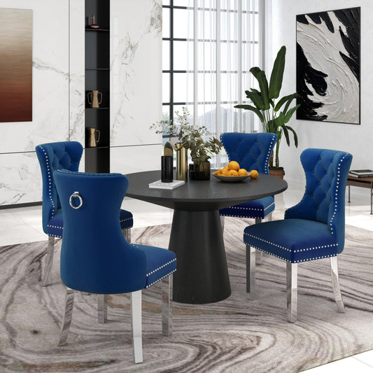 Cobre Contemporary Faux Marble Dining Table with 4 Velvet Nailhead Trim Dining Chairs, Blue