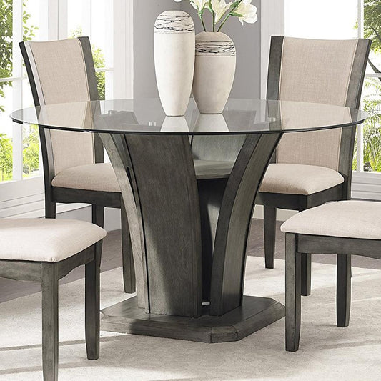 Roundhill Furniture Cylina Solid Wood Glass Top Round Dining Table with 4 Chairs
