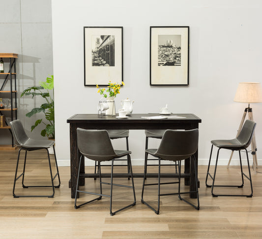 Lotusville 7-Piece Counter Height Antique Black Wood Dining Table with 6 Gray Faux Leather Chairs