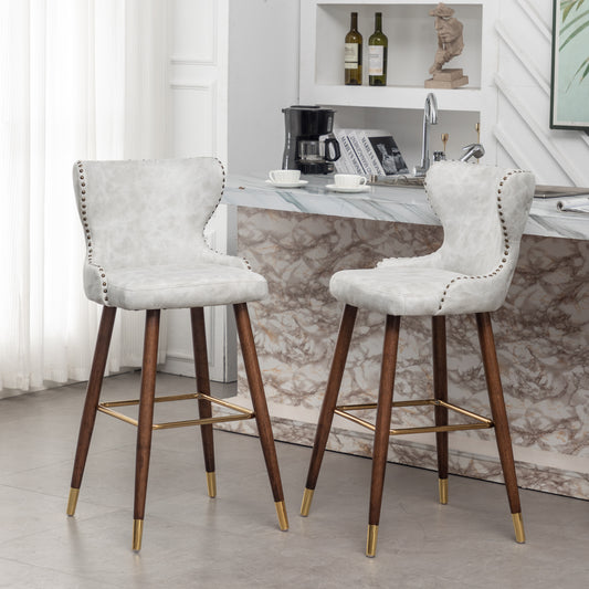 Roundhill Furniture Nevis Mid-century Modern Faux Leather Tufted Nailhead Trim Barstool, White, Set of 2