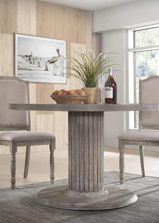 Ferran Wood Pedestal Dining Table in Reclaimed Gray