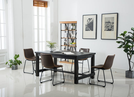 Bronco Antique Wood Finished Dining Set: Table and Four Chairs, Brown