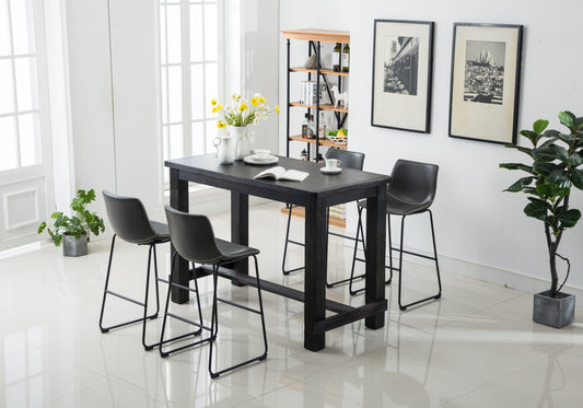 Bronco Antique Wood Finished Bar Dining Set: Table and Four Bar Stools, Grey