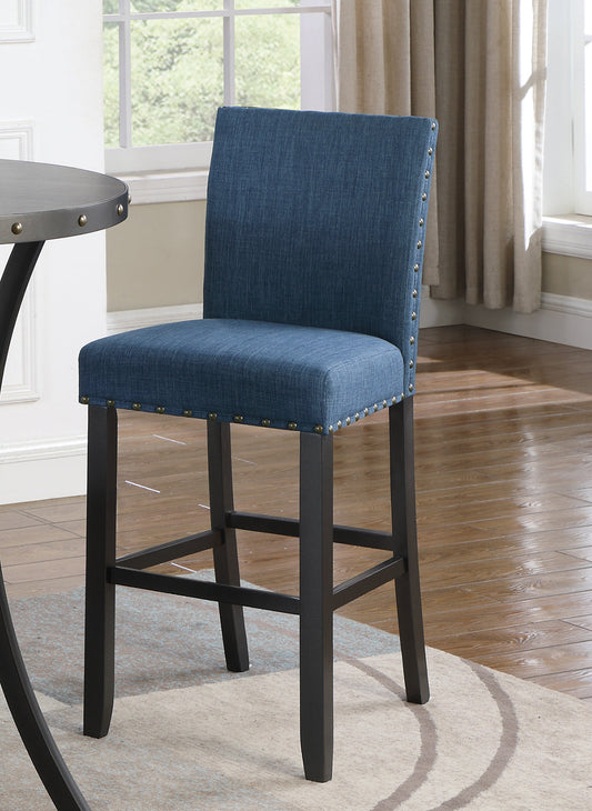 Biony Blue Fabric Bar Stools with Nailhead Trim, Set of 2