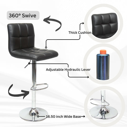 Bradford Black Faux Leather Swivel Height Adjustable Bar Stools with Square Chrome Base, Set of 2