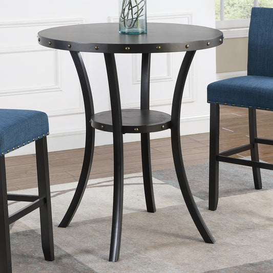 Biony 3-Piece 36" Round Espresso Finish Bar Table with 2 Blue Fabric Nail Head Pub Chairs