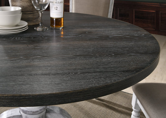 Banff 5-piece Dining Set, Cross-Buck Round Table with 4 Tufted Chairs
